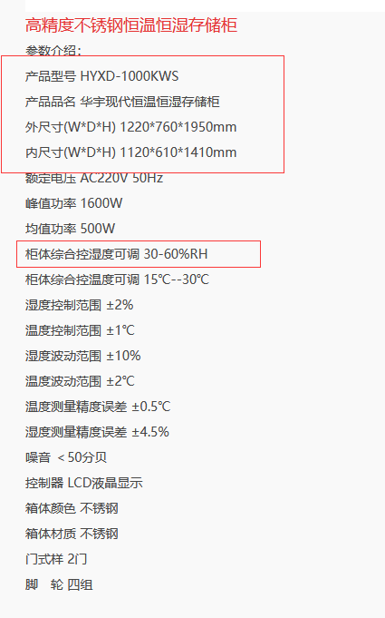 普通消費者購買恒溫恒濕柜一般會選擇幾家廠家進(jìn)行評審,然后再確定生產(chǎn)廠家。評獎的兩個重要因素是價格和技術(shù)參數(shù)。當(dāng)價格相差無幾時,技術(shù)參數(shù)便成了贏家。許多客戶認(rèn)為,參數(shù)數(shù)字標(biāo)的溫濕度的范圍越高,其儲存效果越好。這真的是真的嗎?給出一個簡單的例子,還是HYXD-1000KWS型恒溫恒濕柜,柜體綜合控濕度可調(diào)這個項目。有些廠商會寫0-90rh這個值,有些則是30-60rh這個值。0-90rh比30-60rh精準(zhǔn)嗎?回答是不可能的,因為濕度是相對概念很難達(dá)到絕對零濕度的概念,通常來講20rh以下即屬于超低濕范疇需要多臺壓縮機(jī)和更嚴(yán)格的密封技術(shù)才有可能達(dá)到,目前國內(nèi)能穩(wěn)定控制柜內(nèi)濕度長期維持在超低濕狀態(tài)下的廠家不超過個位數(shù),因此標(biāo)注濕度控制在0-90rh的基本是在忽悠不懂行的客戶(在者大部分儲存品也不能長期處于超低濕環(huán)境,過于干燥的的環(huán)境會造成脫水?dāng)嗔训惹闆r)